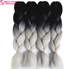 5pcs Ombre Kanekalon Braiding Hair Grey Gray Kanekalon Jumbo Braid Two Tone Ombre Braiding Hair Synthetic Box Braids Ha Cabelo Com Tranca Trancas Loiras Cabelo